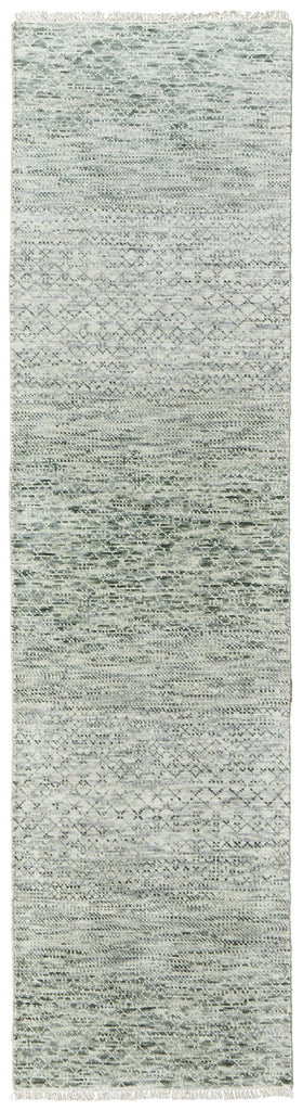 Add some artistry to your room with this 12-foot ivory and green wool hand knotted runner rug with fringe. This runner shaped rug flaunts a ivory and green color that will be a great way to accent your space. Solid colors are versatile and will blend with any existing decor style. Ideal for spaces with kids and pets, this rug is stain resistant to help repel stains and spilled liquids. Tassel ends bring a timeless and fashionable look to your interior. Crafted by skilled artisans, this hand knotted rug is genuine and unique. No two will be exactly alike. Place this area rug against a hardwood or tile floor and it will enliven your living space with style and sophistication. 30-inch H x 144-inch W x 0.35-inch D