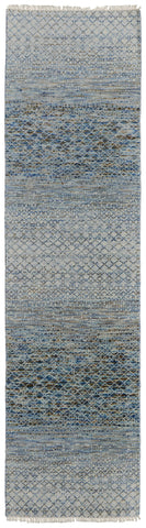 Set an inviting tone in your space with this 12-foot ivory blue and brown wool hand knotted runner rug with fringe. This runner shaped rug flaunts a ivory blue and brown color that will be a great way to accent your space. Solid colors are versatile and will blend with any existing decor style. Ideal for spaces with kids and pets, this rug is stain resistant to help repel stains and spilled liquids. Tassel ends bring a timeless and fashionable look to your interior. Crafted by skilled artisans, this hand knotted rug is genuine and unique. No two will be exactly alike. Area rugs help to give warmth and sense of home to your space. 30-inch H x 144-inch W x 0.35-inch D