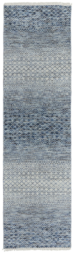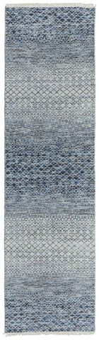 This 12-foot ivory gray and blue wool hand knotted runner rug with fringe, is a great way to add warmth to a room. This runner shaped rug flaunts a ivory gray and blue color that will be a great way to accent your space. Solid colors are versatile and will blend with any existing decor style. Ideal for spaces with kids and pets, this rug is stain resistant to help repel stains and spilled liquids. Tassel ends bring a timeless and fashionable look to your interior. Crafted by skilled artisans, this hand knotted rug is genuine and unique. No two will be exactly alike. Area rugs help to give warmth and sense of home to your space. 30-inch H x 144-inch W x 0.35-inch D