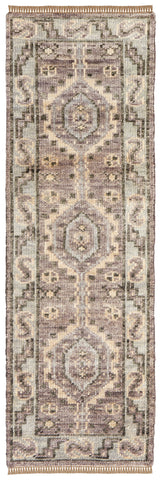 Add great coloration and comfortable texture to your space with this 12-foot ivory gray and brown wool geometric hand knotted runner rug with fringe. This runner shaped rug features a geometric design in ivory gray and brown to give it visual interest. A classic shape marries with good looking design for your space ideal for spaces with kids and pets, this rug is stain resistant to help repel stains and spilled liquids. Tassel ends bring a timeless and fashionable look to your interior. Crafted by skilled artisans, this hand knotted rug is genuine and unique. No two will be exactly alike. Area rugs help to give warmth and sense of home to your space. 30-inch H x 144-inch W x 0.4-inch D