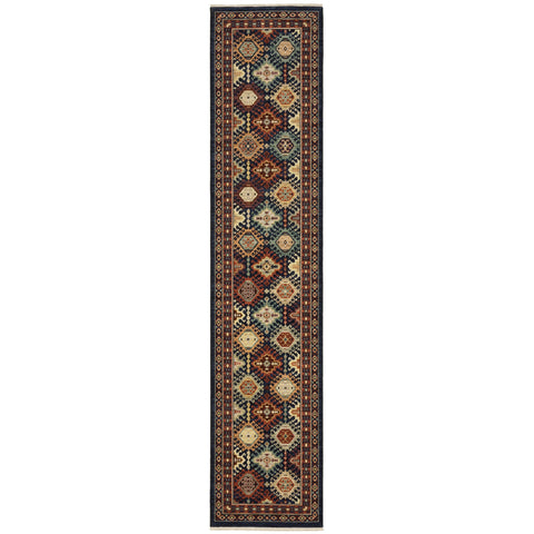 Add some artistry to your room with this 12-foot navy blue oriental runner rug with fringe. This runner shaped rug features a oriental design in navy blue to give it visual interest. A classic shape marries with good looking design for your space tassel ends bring a timeless and fashionable look to your interior. Area rugs help to give warmth and sense of home to your space. 30.71-inch H x 145.67-inch W x 0.32-inch D