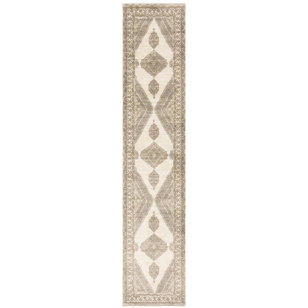 Add great coloration and comfortable texture to your space with this 12-foot beige and ivory oriental runner rug. Ideal for spaces with kids and pets, this rug is stain resistant to help repel dirt and spilled liquids. Built to last, this rug crafted from polypropylene and nylon fibers is known for its durability and long lasting appeal. Rugs are a great way to showcase your style, hide imperfections, warm your home and reduce noise. 29.92-inch h x 143.7-inch w x 0.55-inch d.