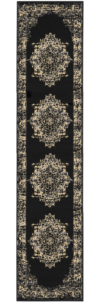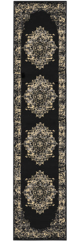 Set an inviting tone in your space with this 12-foot black and ivory damask runner rug. Built to last, this rug crafted from polypropylene fibers is known for its durability and long lasting appeal. Rugs are a great way to showcase your style, hide imperfections, warm your home and reduce noise. This rectangular shaped rug features a abstract design that will add a functional and decorative accent to your space. This transitional style runner makes a great accent for the hallway, in front of cabinets, in the laundry room, or any other space you need a narrow and long rug. 27-inch h x 144-inch w x 0.5-inch d.