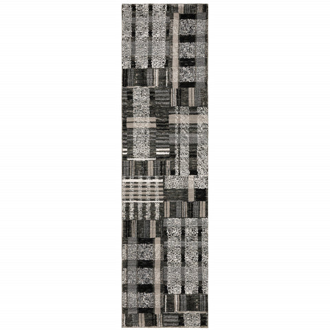 Set an inviting tone in your space with this 12-foot black gray and ivory geometric runner rug. Ideal for spaces with kids and pets, this rug is stain resistant to help repel dirt and spilled liquids. Built to last, this rug crafted from polypropylene and nylon fibers is known for its durability and long lasting appeal. Rugs are a great way to showcase your style, hide imperfections, warm your home and reduce noise. This rectangular shaped rug features a abstract design that will add a functional and decorative accent to your space. 29.92-inch h x 143.7-inch w x 0.55-inch d.