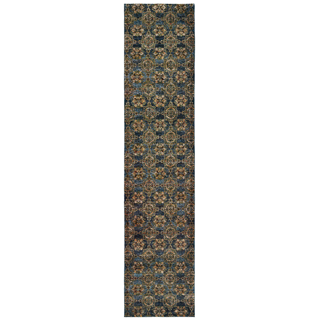 Add great coloration and comfortable texture to your space with this 12-foot blue and gold oriental runner rug. Ideal for spaces with kids and pets, this rug is stain resistant to help repel dirt and spilled liquids. Built to last, this rug crafted from polypropylene and nylon fibers is known for its durability and long lasting appeal. Rugs are a great way to showcase your style, hide imperfections, warm your home and reduce noise. This rectangular shaped rug features a abstract design that will add a functional and decorative accent to your space. 29.92-inch h x 143.7-inch w x 0.55-inch d.