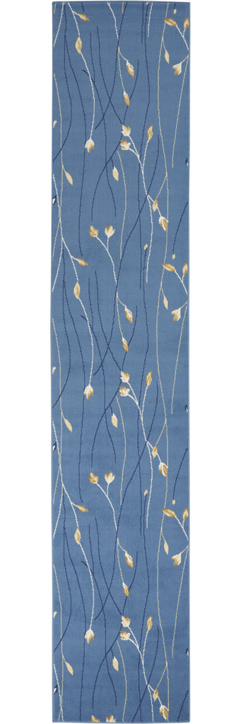 Add some artistry to your room with this 12-foot blue and ivory floral vines runner rug. Built to last, this rug crafted from polypropylene fibers is known for its durability and long lasting appeal. Rugs are a great way to showcase your style, hide imperfections, warm your home and reduce noise. This rectangular shaped rug features a abstract design that will add a functional and decorative accent to your space. This contemporary style runner makes a great accent for the hallway, in front of cabinets, in the laundry room, or any other space you need a narrow and long rug. 27-inch h x 144-inch w x 0.5-inch d.