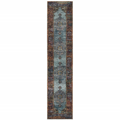 Add some artistry to your room with this 12-foot blue and red oriental runner rug. Ideal for spaces with kids and pets, this rug is stain resistant to help repel dirt and spilled liquids. Built to last, this rug crafted from polypropylene and nylon fibers is known for its durability and long lasting appeal. Rugs are a great way to showcase your style, hide imperfections, warm your home and reduce noise. This rectangular shaped rug features a abstract design that will add a functional and decorative accent to your space. 29.92-inch h x 143.7-inch w x 0.55-inch d.