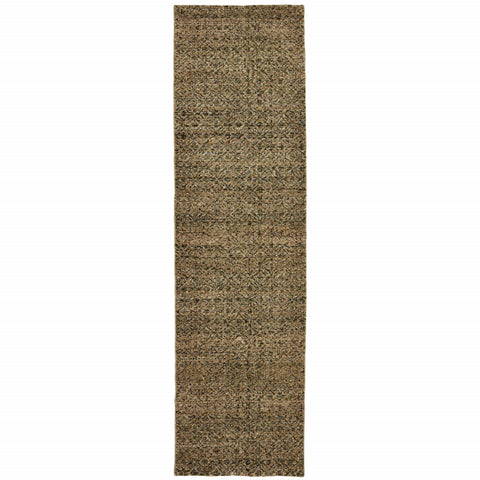 Add great coloration and comfortable texture to your space with this 12-foot green and gold geometric distressed runner rug. Ideal for spaces with kids and pets, this rug is stain resistant to help repel dirt and spilled liquids. Built to last, this rug crafted from nylon and polypropylene fibers is known for its durability and long lasting appeal. Rugs are a great way to showcase your style, hide imperfections, warm your home and reduce noise. 29.92-inch h x 143.7-inch w x 0.55-inch d.