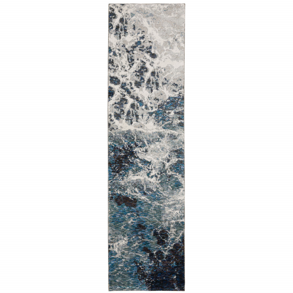 12' Gray Teal And Green Abstract Runner Rug