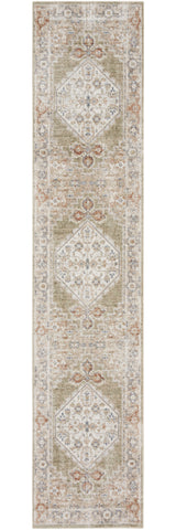 Set an inviting tone in your space with this 12' sage oriental power loom distressed washable runner rug. This runner shaped rug features a oriental design in sage to give it visual interest. A classic shape marries with good looking design for your space This superior Turkish rug represents the highest quality and is built to last. Place this area rug against a hardwood or tile floor and it will enliven your living space with style and sophistication. .25" H x 26.00" W x 144.00" D