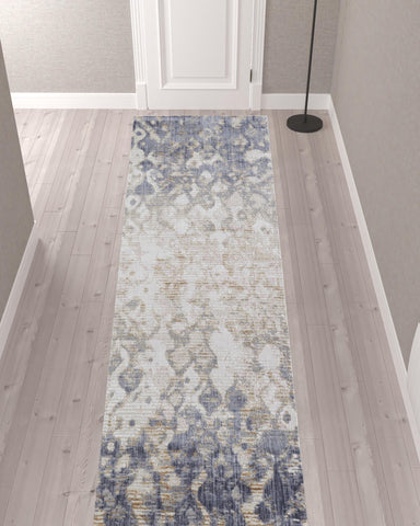 This 12' tan ivory and blue abstract power loom distressed runner rug, is a great way to add warmth to a room. This runner shaped rug features a abstract design in tan ivory and blue to give it visual interest. A classic shape marries with good looking design for your space Made in Turkey, this rug offers high quality combined with good looking designer sensibilities. Place this area rug against a hardwood or tile floor and it will enliven your living space with style and sophistication. 0.28" H x 36" W x 144" D