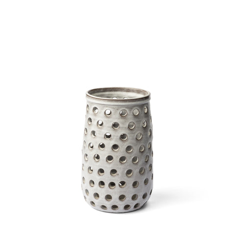 Elevate your decor with this stylish 12-inch white abstract cylinder ceramic table vase. The modern design and sleek cylinder shape of this vase will add a contemporary touch to any space. Crafted from high-quality ceramic in a crisp white finish, this vase is perfect for displaying your favorite blooms or standing alone as a chic accent piece. Its clean lines and minimalist aesthetic make it a versatile choice for various interior styles. Whether placed on a coffee table, mantel, or shelf, this table vase will effortlessly enhance the ambiance of your home with its understated elegance. 12-inch h x 8-inch w x 8-inch d.