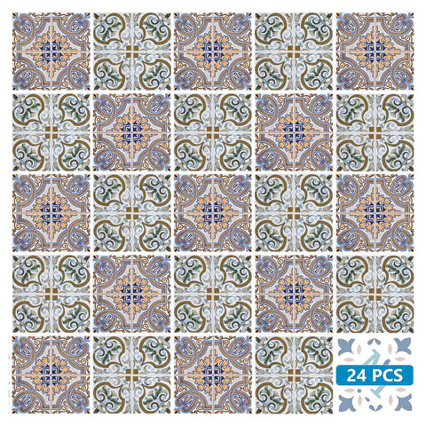 The possibilities are endless with these 12" X 12" Blue Mia Peel And Stick Removable Tiles stickers. These fabulous peel and stick tiles will add lots of color, sophisticated flair, and fun design to your kitchen backsplash, fireplace mantel, stair treads, half wall, bathroom or nook. These 12" square tile stickers in multiple bright fun colors and designs are an easy, no mess solution to complete a personalized and colorful room makeover. Easy to apply on any clean dry flat surface, and easy to remove. Multi use and multi-room appeal make this design option is perfect for renters, landlords, college students and homeowners alike. Peel and stick tile decals make it easy to turn your space into a home. Removable without damage to surfaces. One kit contains 24 stickers. Kit includes multiple styles that can be arranged in any patterning you choose.