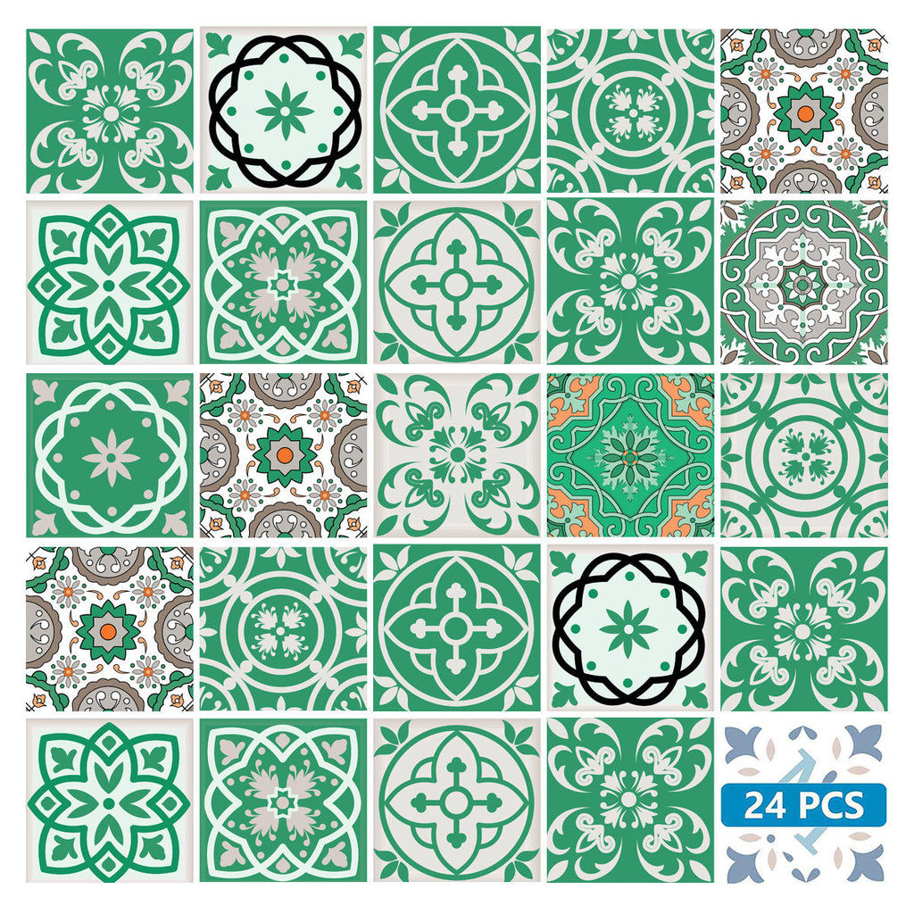 The possibilities are endless with these 12" X 12" Green and White Mosaic Peel and Stick Removable Tiles stickers. These fabulous peel and stick tiles will add lots of color, sophisticated flair, and fun design to your kitchen backsplash, fireplace mantel, stair treads, half wall, bathroom or nook. These 12" square tile stickers in multiple bright fun colors and designs are an easy, no mess solution to complete a personalized and colorful room makeover. Easy to apply on any clean dry flat surface, and easy to remove. Multi use and multi-room appeal make this design option is perfect for renters, landlords, college students and homeowners alike. Peel and stick tile decals make it easy to turn your space into a home. Removable without damage to surfaces. One kit contains 24 stickers. Kit includes multiple styles that can be arranged in any patterning you choose.