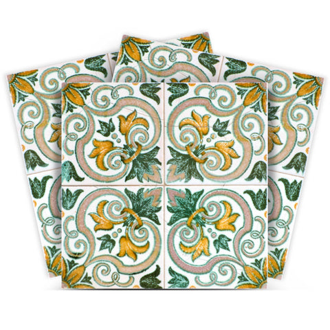 The possibilities are endless with these 12" X 12" Green Yellow Melo Peel and Stick Tiles stickers. These fabulous peel and stick tiles will add lots of color, sophisticated flair, and fun design to your kitchen backsplash, fireplace mantel, stair treads, half wall, bathroom or nook. These 12" square tile stickers in multiple bright fun colors and designs are an easy, no mess solution to complete a personalized and colorful room makeover. Easy to apply on any clean dry flat surface, and easy to remove. Multi use and multi-room appeal make this design option is perfect for renters, landlords, college students and homeowners alike. Peel and stick tile decals make it easy to turn your space into a home. Removable without damage to surfaces. One kit contains 24 stickers. Kit includes multiple styles that can be arranged in any patterning you choose.