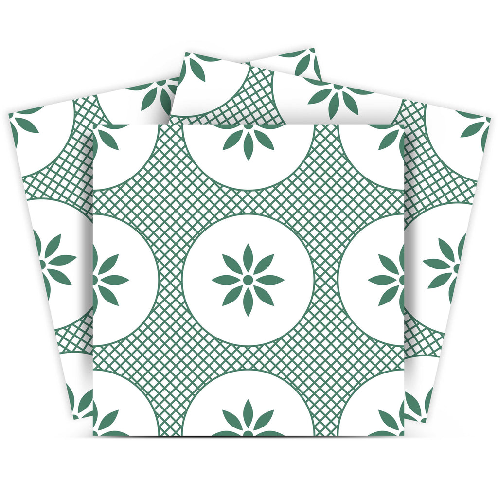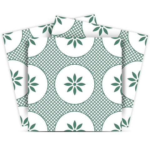 The possibilities are endless with these 12" X 12" Light Sage And White Circle Flower Peel and Stick Removable Tiles stickers. These fabulous peel and stick tiles will add lots of color, sophisticated flair, and fun design to your kitchen backsplash, fireplace mantel, stair treads, half wall, bathroom or nook. These 12" square tile stickers in multiple bright fun colors and designs are an easy, no mess solution to complete a personalized and colorful room makeover. Easy to apply on any clean dry flat surface, and easy to remove. Multi use and multi-room appeal make this design option is perfect for renters, landlords, college students and homeowners alike. Peel and stick tile decals make it easy to turn your space into a home. Removable without damage to surfaces. One kit contains 24 stickers. Kit includes multiple styles that can be arranged in any patterning you choose.