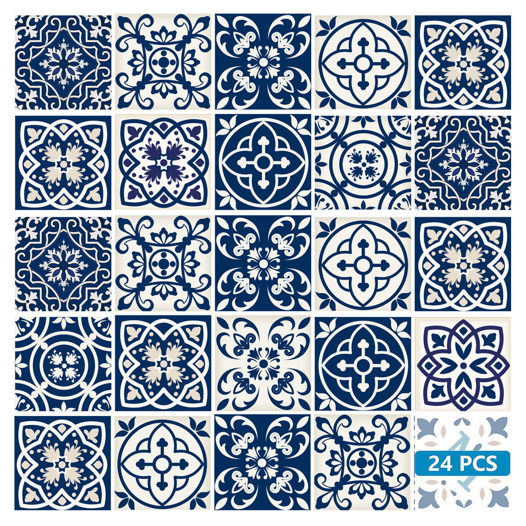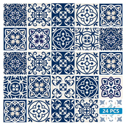 The possibilities are endless with these 12" X 12" Midnight Blue and White Peel and Stick Removable Tiles stickers. These fabulous peel and stick tiles will add lots of color, sophisticated flair, and fun design to your kitchen backsplash, fireplace mantel, stair treads, half wall, bathroom or nook. These 12" square tile stickers in multiple bright fun colors and designs are an easy, no mess solution to complete a personalized and colorful room makeover. Easy to apply on any clean dry flat surface, and easy to remove. Multi use and multi-room appeal make this design option is perfect for renters, landlords, college students and homeowners alike. Peel and stick tile decals make it easy to turn your space into a home. Removable without damage to surfaces. One kit contains 24 stickers. Kit includes multiple styles that can be arranged in any patterning you choose.