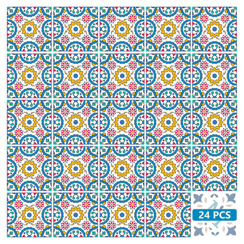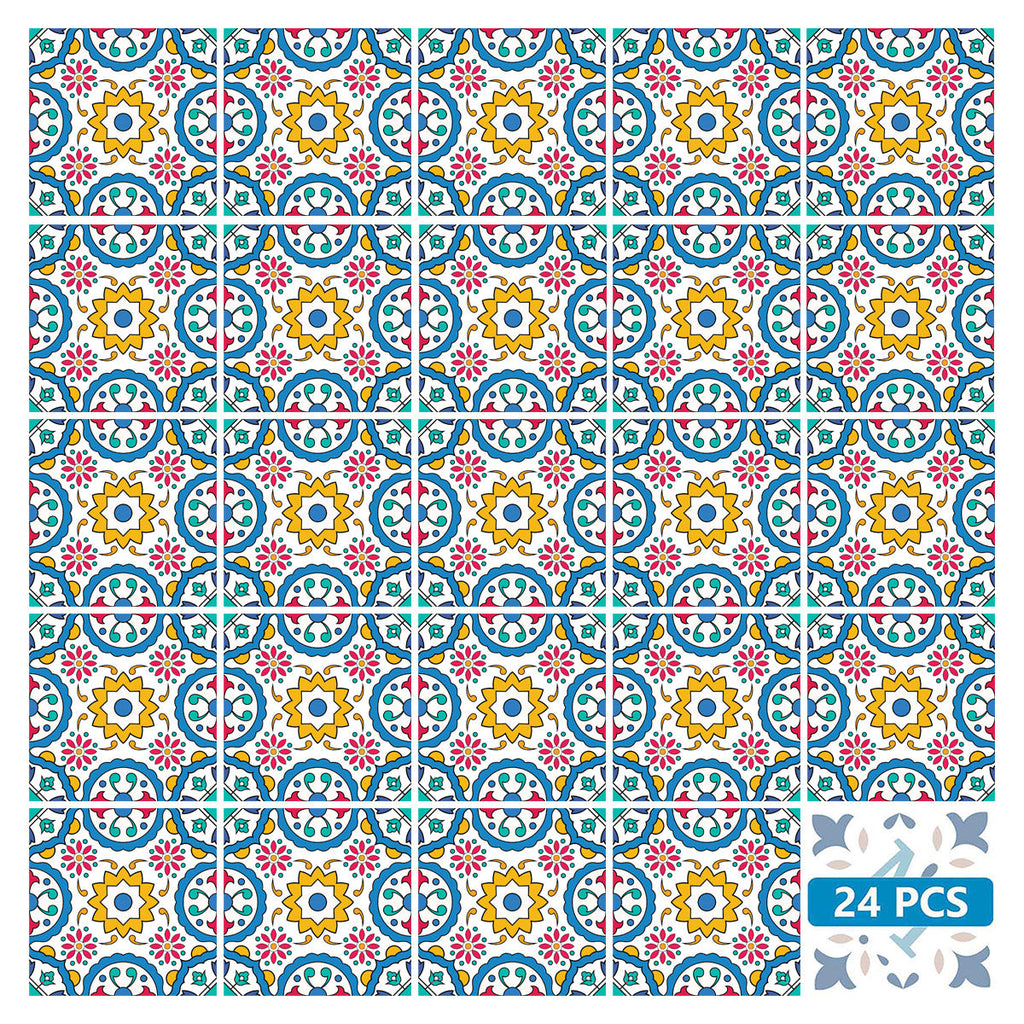The possibilities are endless with these 12" X 12" Raffia Gia Removable Peel and Stick Tiles stickers. These fabulous peel and stick tiles will add lots of color, sophisticated flair, and fun design to your kitchen backsplash, fireplace mantel, stair treads, half wall, bathroom or nook. These 12" square tile stickers in multiple bright fun colors and designs are an easy, no mess solution to complete a personalized and colorful room makeover. Easy to apply on any clean dry flat surface, and easy to remove. Multi use and multi-room appeal make this design option is perfect for renters, landlords, college students and homeowners alike. Peel and stick tile decals make it easy to turn your space into a home. Removable without damage to surfaces. One kit contains 24 stickers. Kit includes multiple styles that can be arranged in any patterning you choose.