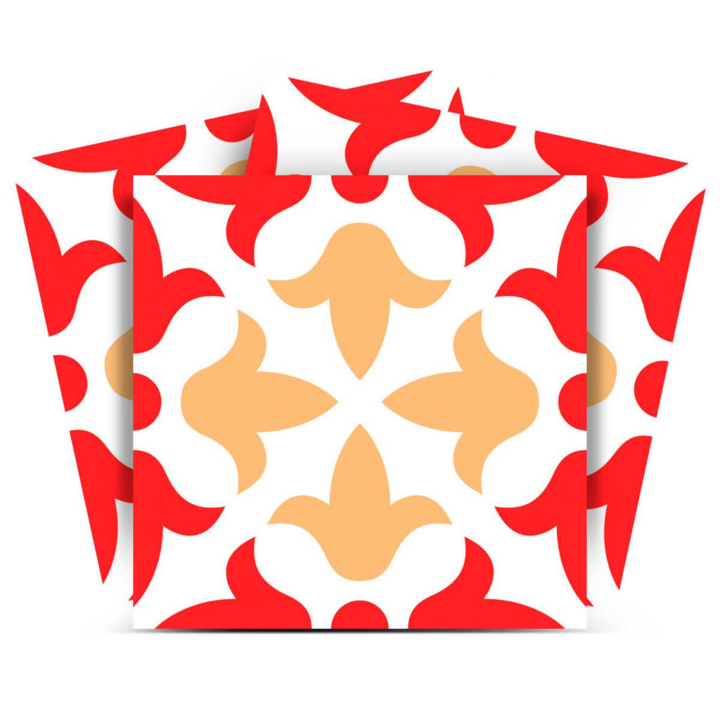 The possibilities are endless with these 12" X 12" Red and White Roja Hola Removable Peel and Stick Tiles stickers. These fabulous peel and stick tiles will add lots of color, sophisticated flair, and fun design to your kitchen backsplash, fireplace mantel, stair treads, half wall, bathroom or nook. These 12" square tile stickers in multiple bright fun colors and designs are an easy, no mess solution to complete a personalized and colorful room makeover. Easy to apply on any clean dry flat surface, and easy to remove. Multi use and multi-room appeal make this design option is perfect for renters, landlords, college students and homeowners alike. Peel and stick tile decals make it easy to turn your space into a home. Removable without damage to surfaces. One kit contains 24 stickers. Kit includes multiple styles that can be arranged in any patterning you choose.