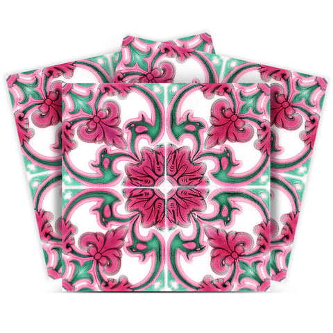 The possibilities are endless with these 12" X 12" Rosa Pink Lea Removable Peel and Stick Tiles stickers. These fabulous peel and stick tiles will add lots of color, sophisticated flair, and fun design to your kitchen backsplash, fireplace mantel, stair treads, half wall, bathroom or nook. These 12" square tile stickers in multiple bright fun colors and designs are an easy, no mess solution to complete a personalized and colorful room makeover. Easy to apply on any clean dry flat surface, and easy to remove. Multi use and multi-room appeal make this design option is perfect for renters, landlords, college students and homeowners alike. Peel and stick tile decals make it easy to turn your space into a home. Removable without damage to surfaces. One kit contains 24 stickers. Kit includes multiple styles that can be arranged in any patterning you choose.