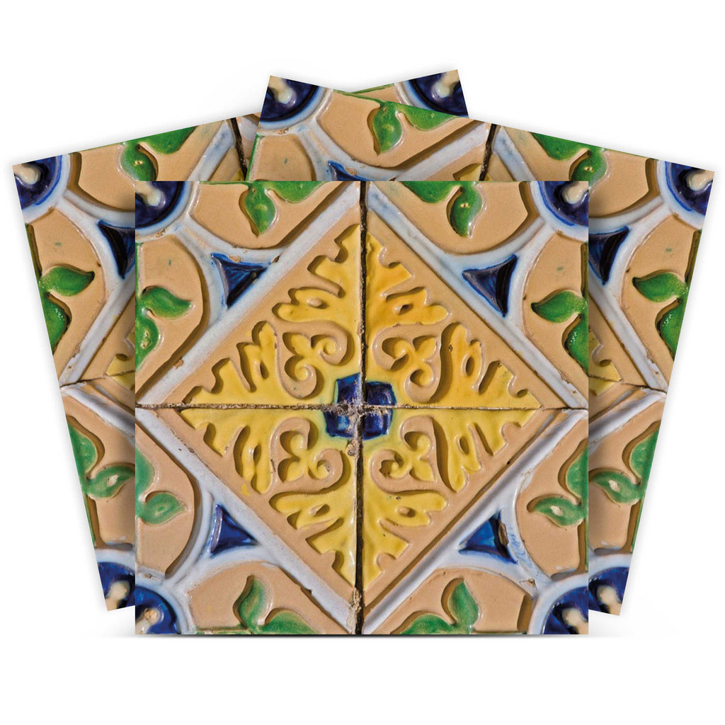 The possibilities are endless with these 12" X 12" Yellow Blue Provence Peel and Stick Removable Tiles stickers. These fabulous peel and stick tiles will add lots of color, sophisticated flair, and fun design to your kitchen backsplash, fireplace mantel, stair treads, half wall, bathroom or nook. These 12" square tile stickers in multiple bright fun colors and designs are an easy, no mess solution to complete a personalized and colorful room makeover. Easy to apply on any clean dry flat surface, and easy to remove. Multi use and multi-room appeal make this design option is perfect for renters, landlords, college students and homeowners alike. Peel and stick tile decals make it easy to turn your space into a home. Removable without damage to surfaces. One kit contains 24 stickers. Kit includes multiple styles that can be arranged in any patterning you choose.