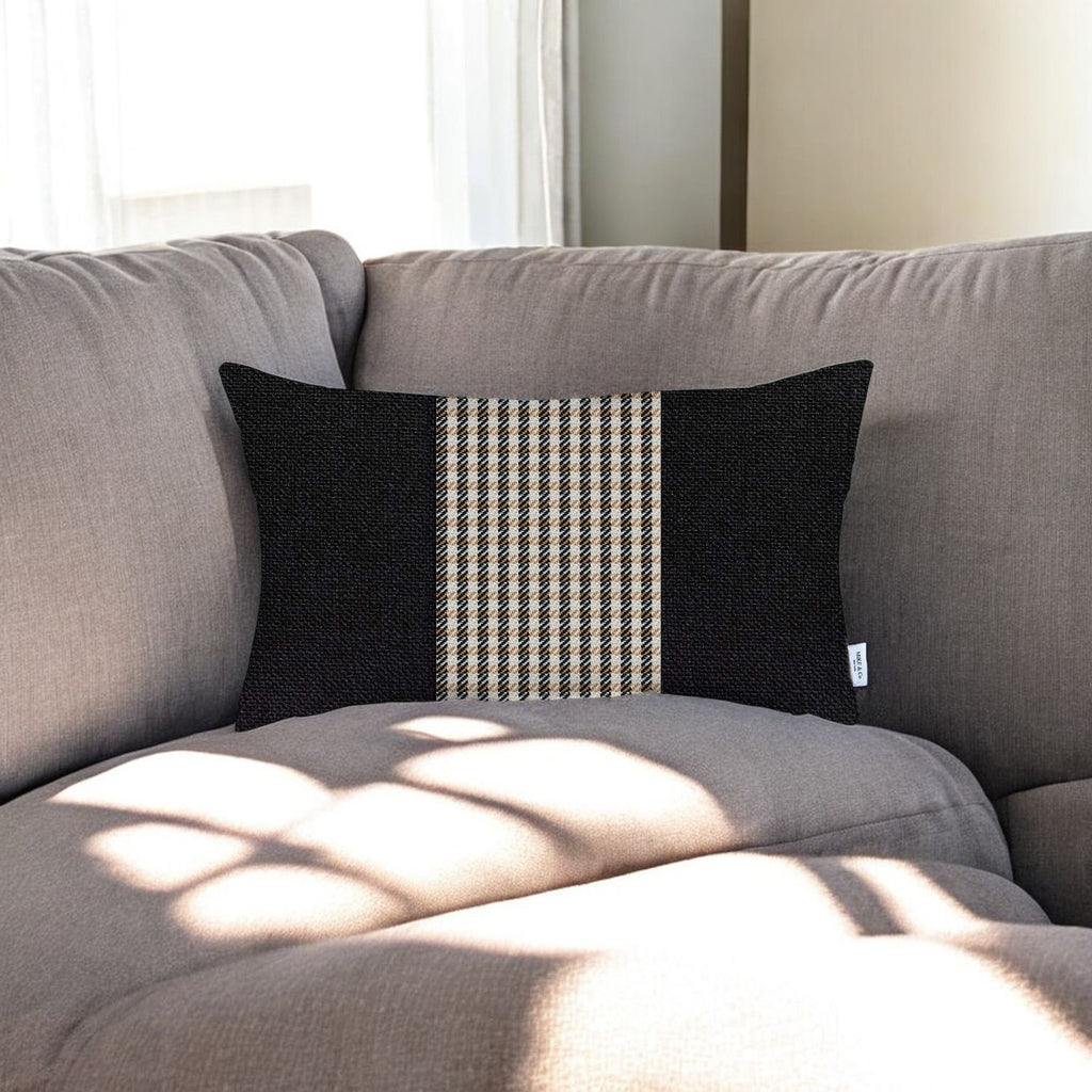The 12" x 20" black and brown houndstooth zippered handmade polyester lumbar pillow cover is the perfect decorative accessory for your home. Durable black and brown polyester has been used to give this pillow cover a beautiful look that will stand the test of time. Great to use on its own or mix with other decorations for the perfect look. A great decorative accessory for your favorite chair, to accent your sofa, or to use as part of your bed ensemble. 0.1" H x 12" W x 20" D