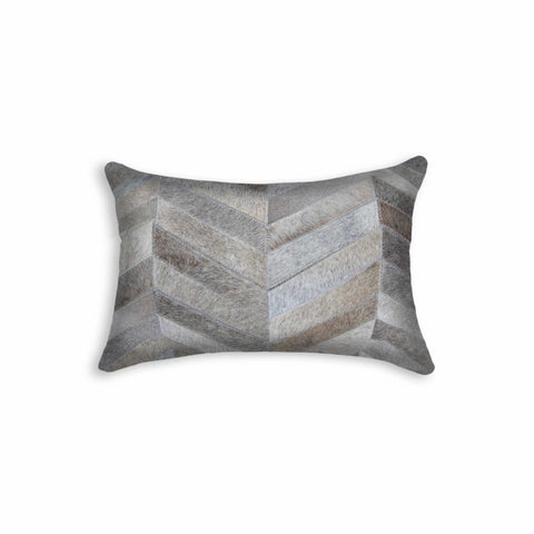 Unique and decorative, this comfortable 12 x 20 gray chevron cowhide throw pillow will leave a lasting impression. This tonal gray hued piece represents the highest quality construction, expertly made from premium and genuine cowhide. Elegantly chic, this pillow is the epitome of luxury. This soft cotton pillow not only is decorative but made to be comfy and cozy all day long. For anyone that loves to decorate or accent their space with color and texture. A great decorative accessory for your favorite chair, to accent your sofa, or to use as part of your bed ensemble. 12-inch H x 20-inch W x 5-inch D