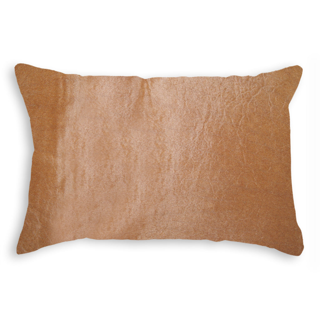 This 12-inch x 20-inch tan cowhide throw pillow will add a beautiful decorative accent to your decor. Indulge in a bit of luxury with this tan colored decorative pillow covered with high grade, genuine cowhide. Elegantly chic, this pillow is the epitome of luxury. Super soft and built to hold its shape, this cotton pillow is a great option. For anyone that loves to decorate or accent their space with color and texture. A great decorative accessory for your favorite chair, to accent your sofa, or to use as part of your bed ensemble. 12-inch H x 20-inch W x 5-inch D