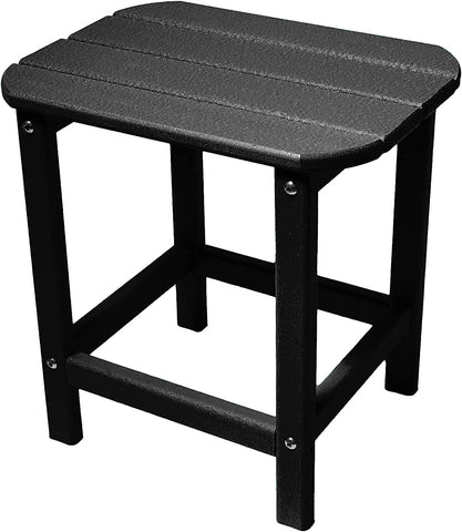 Bring your outdoor living to the next level with our premium 13 inches black resin outdoor side table. An end or side table can be a great decorative addition to your outdoor space. Our unit will surely fit your aesthetic and complements your existing decor. This outdoor table is lightweight and easy to move around because it has a tabletop made of black high quality resin. This table is a classic quadratic shape, which will easily fit into any space in your backyard. Perfect for entertaining guests or just relaxing with family, our table is the ultimate addition to your backyard. 17.5 inches H x 13.25 inches W x 17.25 inches D