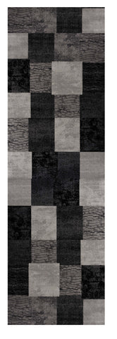 This 13-foot gray and black geometric power loom distressed runner rug, is a great way to add warmth to a room. This runner shaped rug features a geometric design in gray and black to give it visual interest. A classic shape marries with good looking design for your space ideal for spaces with kids and pets, this rug is stain resistant to help repel stains and spilled liquids. Area rugs help to give warmth and sense of home to your space. 32-inch H x 156-inch W x 0.8-inch D