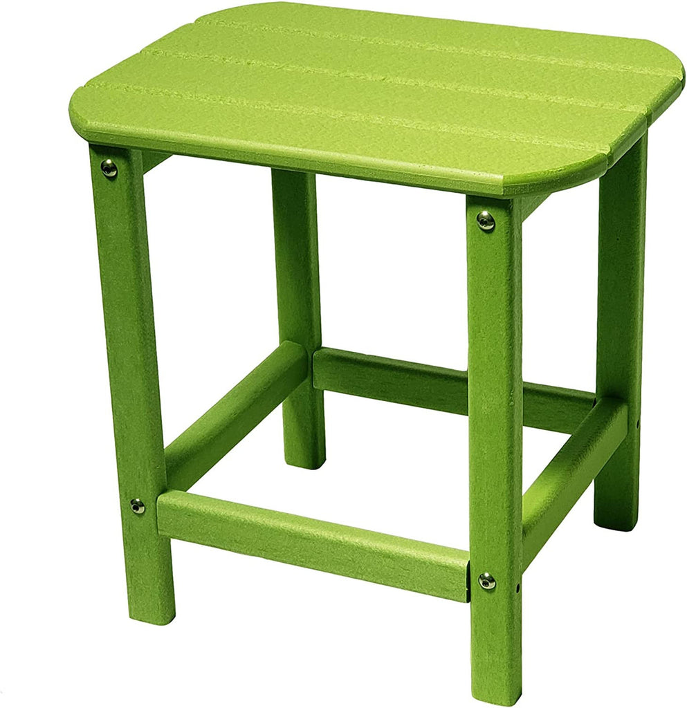 This 13 inches green resin outdoor side table will elevate the decor of your outdoor space, inspiring compliments from any guest. Whether you're relaxing with a good book, sipping a cold drink, or just enjoying the great outdoors, our side table is the perfect spot to keep your essentials close at hand. Our green resin tabletop can be a great choice for several reasons.Perhaps the most important is that resin is a durable material that is resistant to scratches This quadratic outdoor table has clean lines and plenty of surface area. Don't miss out on this must-have outdoor accessory!. 17.5 inches H x 13.25 inches W x 17.25 inches D
