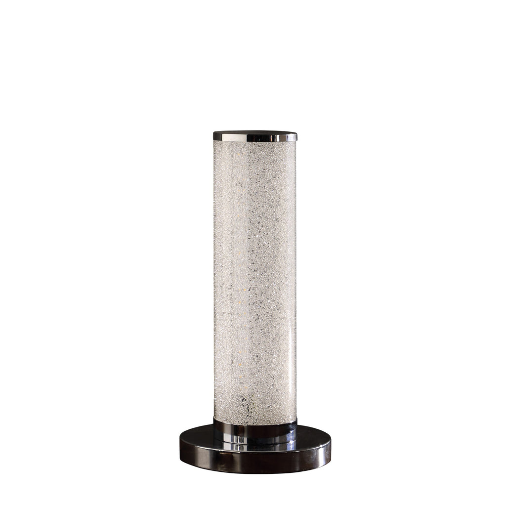 Transform your home���s interior decor with this 13��� Modern White Sand Crystal And Steel Table Lamp. This beautiful and unique lamp has a column structure and features a shiny round steel base, a clear polyester tube filled with many white crystal sand rocks, and inner LED lights to brighten up the room. The crystal rocks catch the light and refract it to create a beautiful and dazzling effect in any room you place the lamp. There is also a round steel cover at the top of the column of light. This lamp is a minimalist statement piece and is eco-friendly and energy efficient, the perfect lamp for you. 13��� x 6��� x 6���