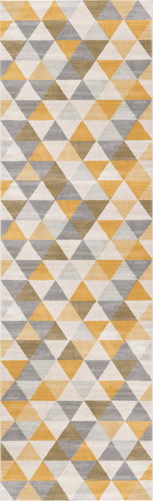Add great coloration and comfortable texture to your space with this 13-foot yellow and ivory geometric runner rug. Built to last, this rug crafted from polypropylene fibers is known for its durability and long lasting appeal. Rugs are a great way to showcase your style, hide imperfections, warm your home and reduce noise. This rectangular shaped rug features a abstract design that will add a functional and decorative accent to your space. This modern style runner makes a great accent for the hallway, in front of cabinets, in the laundry room, or any other space you need a narrow and long rug. 27-inch h x 156-inch w x 0.4-inch d.