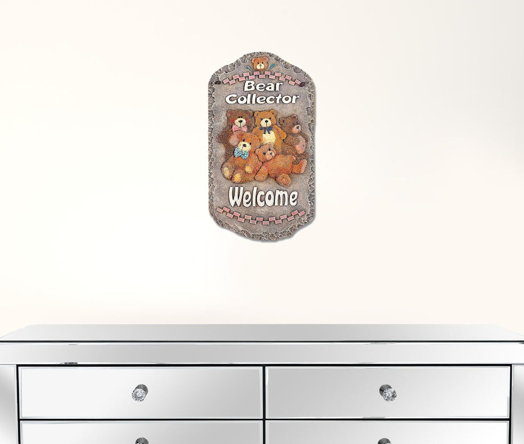Bring some sizzle to your space with this eye-catching 13-inch x 8-inch gray brown and cream bear welcome resin wall decor. Our words matter. Instantly liven up your space with this text decor that brings sentiment, color, and dimension to your walls. Add a sense of the woods, mountain or lodge lifestyle to your walls with this outdoorsy bear wall art. This good looking decor will fill the empty space on your wall while adding a stylish and decorative touch. Utilize this opportunity to create a focal point in the room with this fabulous wall decor option. 13-inch h x 7.75-inch w x 1-inch d.