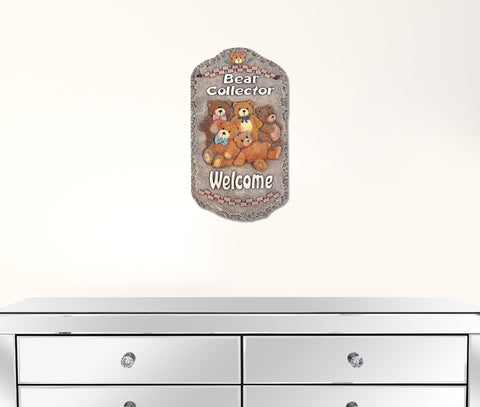 13" X 8" Gray Brown And Cream Bear Welcome Resin Wall Decor