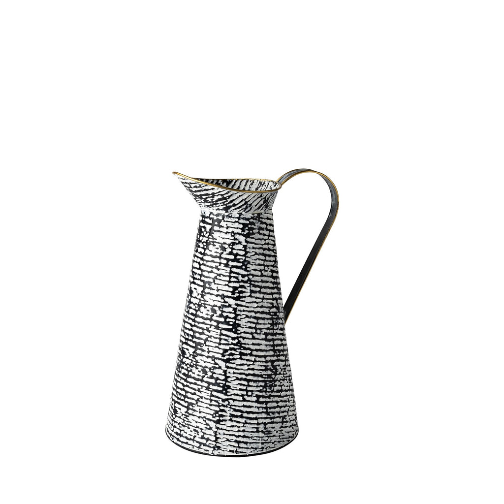 14" Black And White Abstract Cylinder Metal Jug Vase