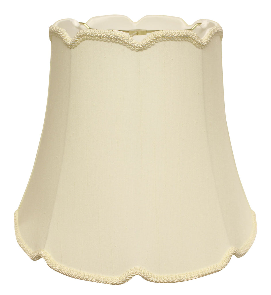 This Ivory Empire Slanted Cylinder Scroll Edge Silk Lampshade has a hint of cottage flair and will be a great addition to your lamp base. This softback lampshade includes a standard washer fitter that fits over a standard harp and can be used with your existing finial design. This high quality crafted cylinder shape has a slight slant to give it some visual interest and is crafted of the finest monay shantung with a fold on top and bottom of the shade. 12" x 14" x 14"