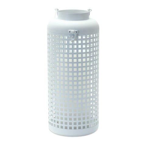 14" White Distressed Lattice Iron Floor Lantern Candle Holder