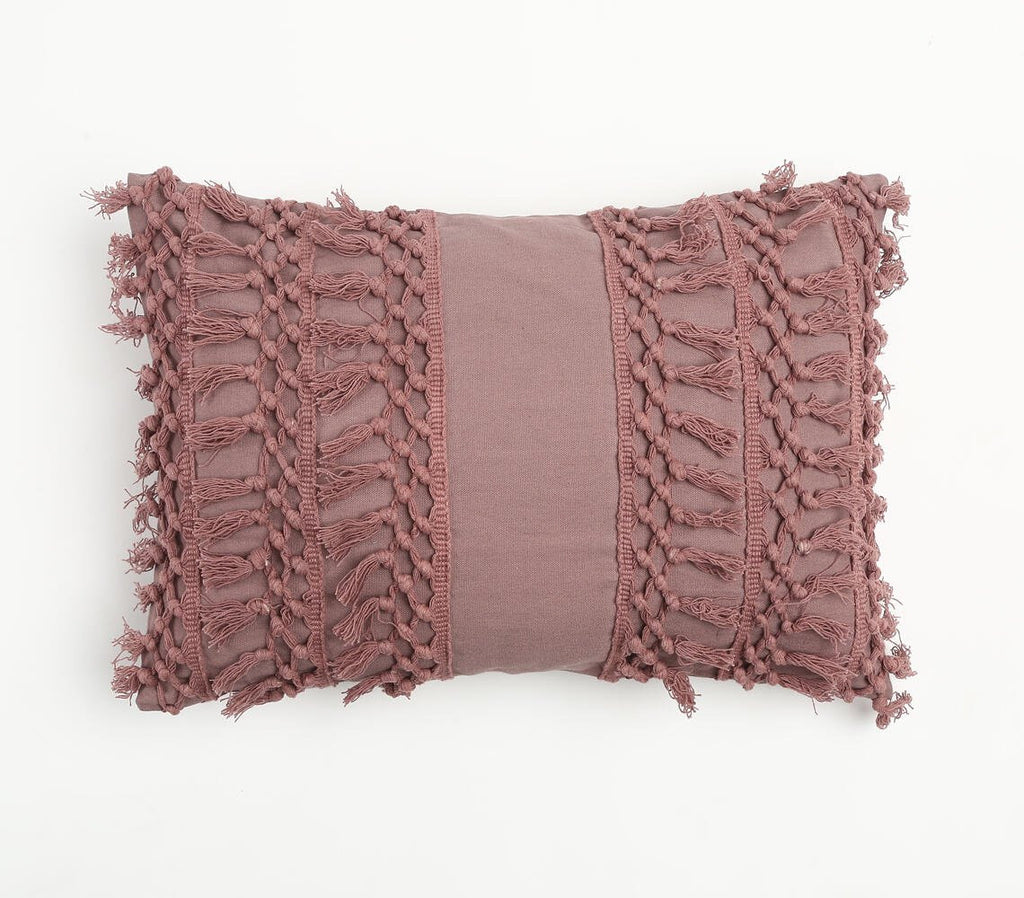 14" X 20" Mauve Handmade Indoor Outdoor Throw Pillow Cover With Tassels