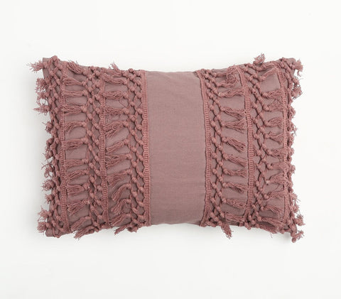 Unique and decorative, this comfortable 14-inch x 20-inch mauve handmade indoor outdoor throw pillow cover with tassels will leave a lasting impression. This mauve colored decorative pillow cover is made from high grade 100% cotton that makes it super soft to the touch and long lasting. Charming decorative tassels give this design texture along with a hand-crafted look and feel. Durable and rugged enough for outdoors but can still be used inside as well. Decorative pillows are a great way to change up the look and feel of your space easily and quickly. 14-inch H x 20-inch W x 0.1-inch D