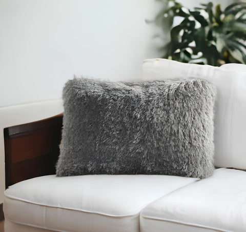 Encourage an indulgent style into your home with the addition of this luxuriously soft Slate Gray Super Shag Faux Fur Throw Pillow that will uplift the aesthetics of your living space while being functional. The subtle shade of slate gray and the faux fur shaggy fashion adds to its elegance providing a scrumptiously soft and stylish surface texture that looks great and is comfortable too. The full and fluffy look of this shaggy throw pillow will instantly transform any space. 14-inch H x 20-inch W x 6-inch D