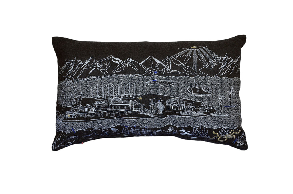 The perfect complement to your sofa, favorite chair, or bed, this 14-inch x 24-inch black gray and white hometown pride wool lumbar throw pillow is a great decorative accent. The black gray and white coloring of the extremely durable and long lasting wool will add dimension and texture to your space. Great to use on its own or mix with other decorations for the perfect look. A great decorative accessory for your favorite chair, to accent your sofa, or to use as part of your bed ensemble. 14-inch H x 24-inch W x 4-inch D