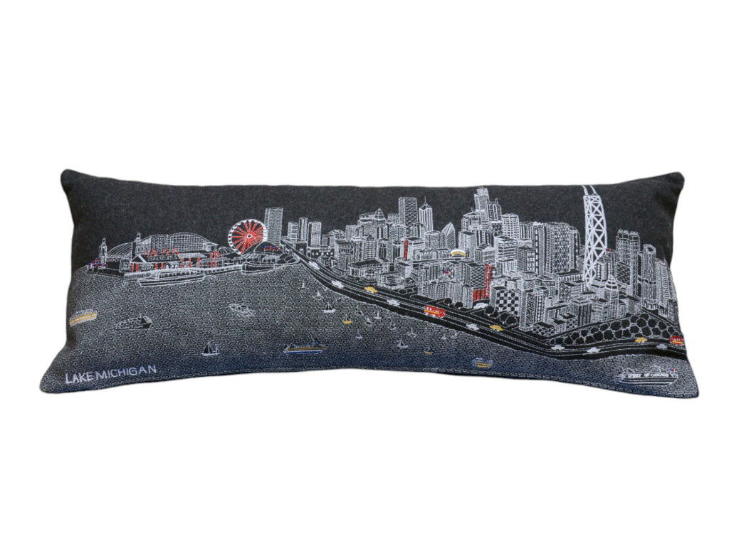 Unique and decorative, this comfortable 14-inch x 35-inch black gray and white hometown pride wool lumbar throw pillow will leave a lasting impression. This soft and durable decorative pillow is expertly made of high grade, long lasting wool in a black gray and white coloration. Decorative throw pillows not only add color and dimension to your space but can be comfy and supportive when you are lounging and cuddling as well. A great decorative accessory for your favorite chair, to accent your sofa, or to use as part of your bed ensemble. 14-inch H x 35-inch W x 4-inch D