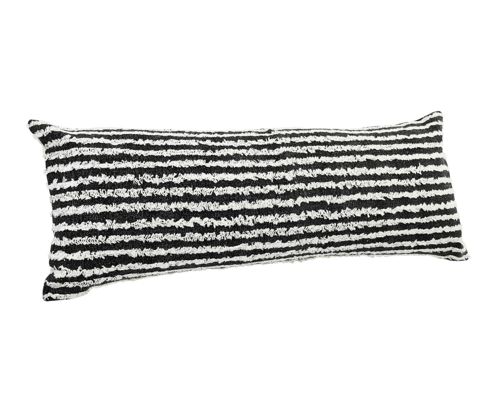 14" X 36" Black And Cream 100% Cotton Striped Zippered Pillow