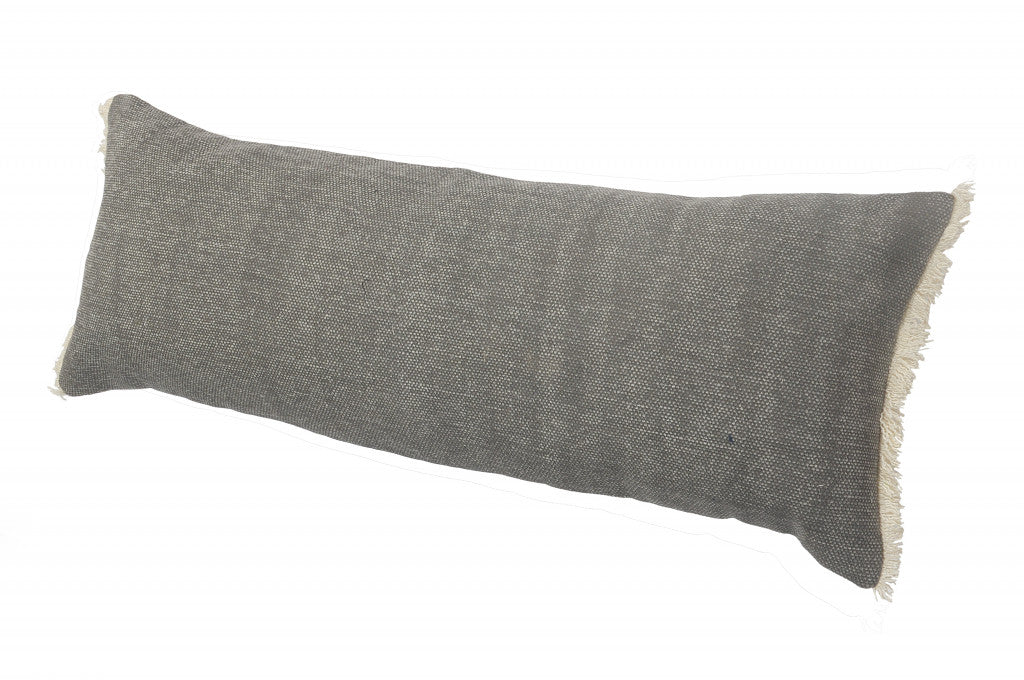 Unique and decorative, this comfortable 14-inch x 36-inch gray cotton throw pillow with fringe will leave a lasting impression. This gray colored decorative pillow is made from high grade cotton that is durable and long lasting. Super soft and built to hold its shape, this polyfill-filled pillow is a great option. For anyone that loves to decorate or accent their space with color and texture. Decorative throw pillows not only add color and dimension to your space but can be comfy and supportive when you are lounging and cuddling as well. 14-inch h x 36-inch w x 7.5-inch d.