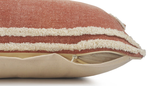 This 14" x 36" orange and off-white 100% cotton striped zippered pillow will add a beautiful decorative accent to your decor. Soft and textural orange and off-white 100% cotton has been used to make this pillow look and feel like a real treasure. For anyone that loves to decorate or accent their space with color and texture. A great decorative accessory for your favorite chair, to accent your sofa, or to use as part of your bed ensemble. 14" H x 14" W x 36" D