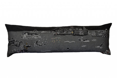Add an air of fashion to your room and rejuvenate the space with this cute and fashionable 14-inch x 45-inch black gray and white hometown pride wool lumbar throw pillow. This soft and durable decorative pillow is expertly made of high grade, long lasting wool in a black gray and white coloration. For anyone that loves to decorate or accent their space with color and texture. A great decorative accessory for your favorite chair, to accent your sofa, or to use as part of your bed ensemble. 14-inch H x 45-inch W x 4-inch D