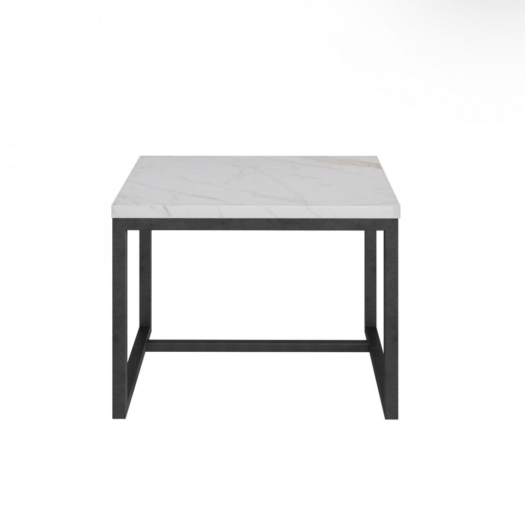 Distinctive in style the 15" black and white stone and metal square end table radiates a versatile charm. The black coloration of the high quality metal base marries nicely with the white glistening stone top. Side tables are a great way to flank your sofa, use as an accent next to your favorite chair, or can even be used bedside. This versatile table is a great accent for most any room. 15" H x 19.5" W x 19.5" D