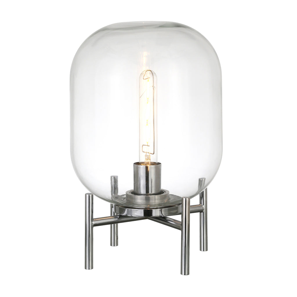 This 15-inch nickel metal table lamp with clear cylinder shade is a great way to add some brightness to any corner of your home. The base of this lamp is made of metal finished in a nickel tone. The clear cylinder glass shade is finishes this piece off nicely and symmetrically this standard table lamp is designed to provide general lighting to the area. Use this lamp anywhere and elevate the look of the whole space. It is perfect for virtually any decor. 15-inch H x 9-inch W x 9-inch D