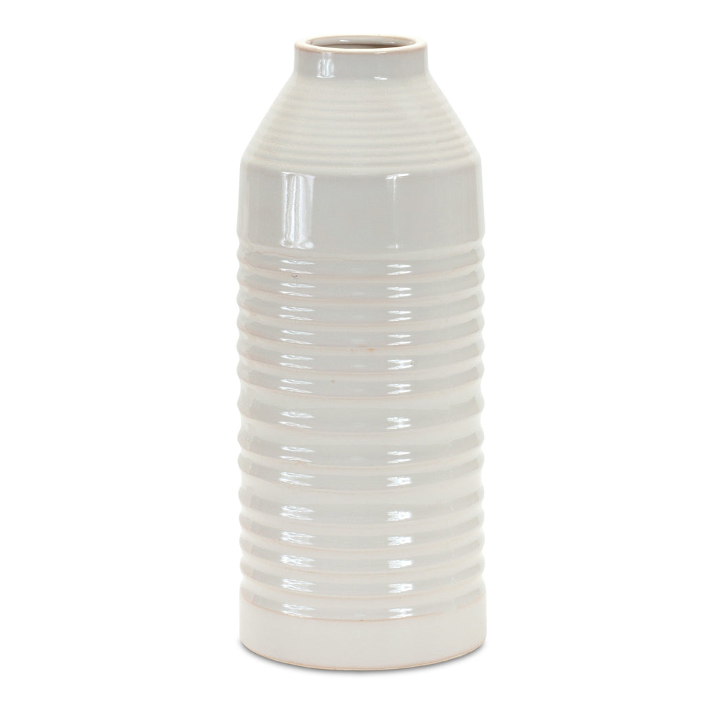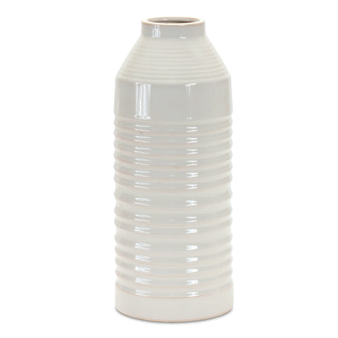 15" White Ribbed Cylinder Terracotta Table Vase